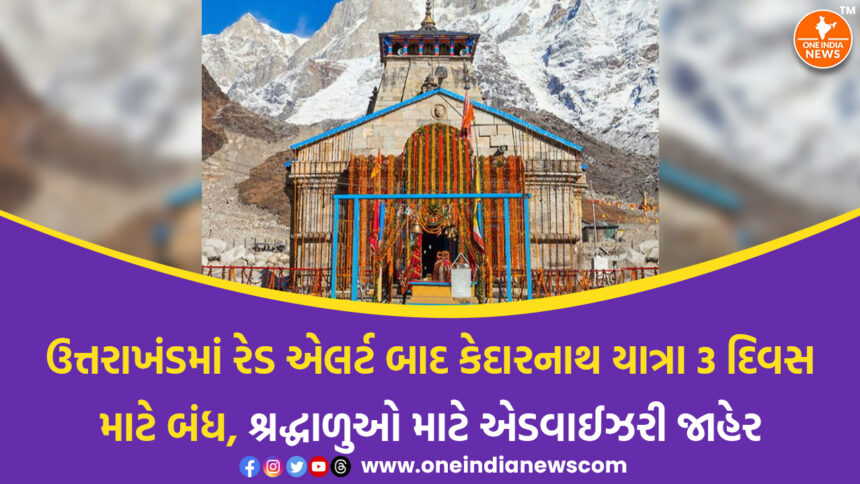 ઉત્તરાખંડમાં કેદારનાથ યાત્રા ત્રણ દિવસ માટે બંધ રાખવામાં આવી છે. હવામાન વિભાગ દ્વારા આ ક્ષેત્રમાં ભારે વરસાદનું રેડ ઍલર્ટ જારી કર્યા બાદ આ યાત્રા ત્રણ દિવસ માટે બંધ રાખવામાં આવી છે. જિલ્લા વહીવટી તંત્રને હાઈ ઍલર્ટ પર રાખવામાં આવ્યું છે. તીર્થયાત્રીઓ અને સ્થાનિક લોકોની સુરક્ષા સુનિશ્ચિત કરવા માટે વ્યવસ્થા કરવામાં આવી છે.