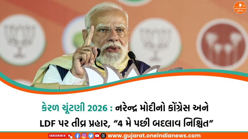 કેરળ વિધાનસભા ચૂંટણીને લઈને રાજકીય માહોલ ગરમાયો છે, ત્યારે નરેન્દ્ર મોદીએ શનિવારે તિરુવલ્લામાં યોજાયેલી વિશાળ જનસભાને સંબોધી કોંગ્રેસ અને LDF સરકાર પર કડક પ્રહાર કર્યા. પોતાના ભાષણ દરમિયાન તેમણે આરોપ લગાવ્યો કે કોંગ્રેસ એવી રાજનીતિ કરે છે, જેનાથી પશ્ચિમ એશિયાના દેશો ભારત પ્રત્યે વિરોધી વલણ અપનાવી શકે છે.