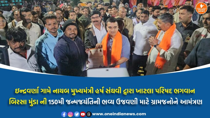 ભગવાન બિરસા મુંડા ની 150મી જન્મજયંતિની ઐતિહાસિક ઉજવણીને અવસરે આવતીકાલે વડાપ્રધાન નરેન્દ્રભાઈ મોદીના આગમન પૂર્વે નાયબ મુખ્યમંત્રી હર્ષભાઈ સંઘવીએ ગરુડેશ્વર તાલુકાના ઇન્દ્રવર્ણા ગામે 13મી નવેમ્બરે ખાટલા પરિષદ યોજી હતી. આ અવસરે તેમણે ગ્રામજનોને ડેડીયાપાડા ખાતે યોજાનારી રાષ્ટ્રીય સ્તરની ઉજવણીમાં સહભાગી થવા હાર્દિક આમંત્રણ પાઠવ્યું હતું.