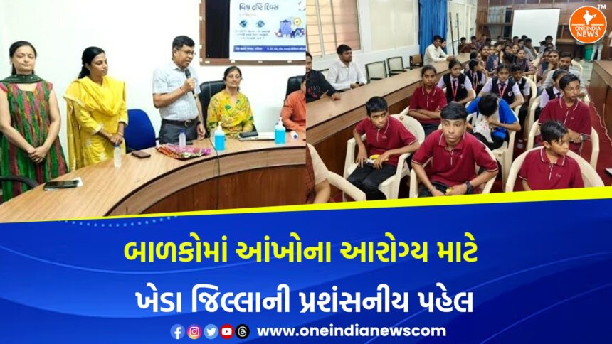 વિશ્વ દ્રષ્ટિ દિવસ નિમિતે ખેડા જિલ્લામાં ૩૫૦ ચશ્માનું બાળકોમાં વિનામૂલ્યે વિતરણ – ખેડા જિલ્લાના ૩૨,૨૬૪ શાળાના બાળકો અને ૧૭,૧૧૦ આંગણવાડીના બાળકોની આંખોની તપાસ કરવામાં આવી હતી.