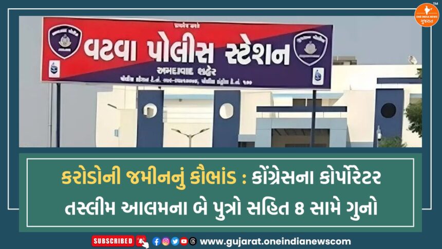 અમદાવાદના વટવા વિસ્તારમાં સામે આવેલું આ કૌભાંડ રિયલ એસ્ટેટ ક્ષેત્રમાં દસ્તાવેજોની ખોટી બનાવટ અને સરકારી કચેરીઓમાં ઠગાઈ દ્વારા જમીન હડપ કરવાની એક ગંભીર ઘટના તરીકે સામે આવ્યું છે. બિલ્ડિંગ કન્સ્ટ્રક્શનના વ્યવસાય સાથે સંકળાયેલા ગુલામ હુસૈન કુરેશીએ વટવા પોલીસને આપેલી ફરિયાદમાં જણાવ્યું છે કે 1037 ચોરસવાર જમીનને ‘ઓર્ચિત ઇન્ફ્રાસ્ટ્રક્સચર’ નામની ભાગીદારી પેઢી દ્વારા ખોટી રીતથી કબજે કરવા માટે ગોઠવણપૂર્વક સોગંદનામા, દસ્તાવેજો અને સહીઓ બનાવવામાં આવી હતી. આ ભાગીદારી પેઢી સાથે બહેરામપુરા વોર્ડના કોંગ્રેસના કોર્પોરેટર તસ્લીમ આલમના બે પુત્રો—તૌસીફ આલમ અને તજમ્મુલ આલમ—સાથે કુલ આઠ લોકો સંકળાયેલા હોવાનું સામે આવ્યું છે.
