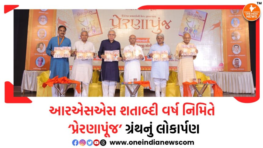 રાષ્ટ્રીય સ્વયંસેવક સંઘ શતાબ્દી વર્ષ નિમિતે સાહિત્ય સાધના ટ્રસ્ટ, કર્ણાવતીદ્વારા ગુજરાતનાં વરિષ્ઠ પ્રચારકો જેમની પ્રેરણા અને કાર્યોથી 1938માં વડોદરામાં શરૂ થયેલ રાષ્ટ્રીય સ્વયંસેવક સંઘનું કાર્ય આજે વટવૃક્ષની જેમ ગુજરાતનાં સમાજજીવનના દરેક ભાગમાં વ્યાપ્ત થઈને અગણિત કાર્યકર્તાઓને રાષ્ટ્ર માટે કાર્ય કરવા માટે પ્રેરિત કરે છે. એવા દધીચિ ઋષિની જેમ જીવન અર્પણ કરનાર ગુજરાતનાં 12 દિવંગત વરિષ્ઠ પ્રચારકોની જીવનગાથા પ્રેરણાપૂંજ(ભાગ 1 અને 2)પુસ્તકસંપુટનો લોકાર્પણ કાર્યક્રમ આજરોજ મા. સુરેશજી સોની (અખિલ ભારતીય કાર્યકારણી સદસ્ય, રા.સ્વ.સંઘ) ના હસ્તે ડો. જયંતિભાઈ ભાડેસિયાની (મા. સંઘચાલક,રા.સ્વ.સંઘ, પશ્ચિમ ક્ષેત્ર)ઉપસ્થિતિમાં દિનેશ હૉલ ખાતે સંપન્ન થયો.