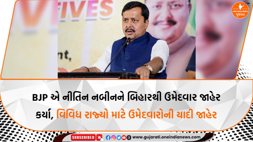 ભારતીય જનતા પાર્ટી (BJP) એ રાજ્યસભા ચૂંટણી માટે વિવિધ રાજ્યોમાંથી પોતાના ઉમેદવારોની સત્તાવાર જાહેરાત કરી છે. બિહારમાંથી પક્ષના રાષ્ટ્રીય અધ્યક્ષ નીતિન નબીનને રાજ્યસભા માટે ઉમેદવાર બનાવવામાં આવ્યા છે. તેમની ઉમેદવારી બિહારમાં પક્ષની મોટી ચૂંટણી વ્યૂહનીતિનો મહત્વપૂર્ણ ભાગ માનવામાં આવી રહી છે.