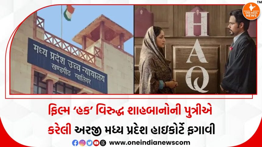 One India News > News > Gujarat > ફિલ્મ ‘હક’ વિરુદ્ધ શાહબાનોની પુત્રીએ કરેલી અરજી મધ્ય પ્રદેશ હાઇકોર્ટે ફગાવી