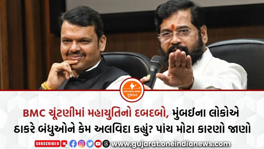 ઉદ્ધવ ઠાકરે અને રાજ ઠાકરે 20 વર્ષ પછી સાથે આવ્યા અને પોતપોતાના પક્ષો વચ્ચે ગઠબંધન કરીને BMC ચૂંટણી લડ્યા. જોકે, આ કામ ન આવ્યું. ઠાકરે ભાઈઓની એકતા તૂટી ગઈ, અને BJPના મહાયુતિ ગઠબંધને તેમને BMCમાં સત્તા પરથી દૂર કર્યા. ઠાકરે ભાઈઓએ તેમના ગઠબંધનને ચૂંટણીમાં ગેમ-ચેન્જર માન્યું, પરંતુ આ રાજકીય પ્રયોગ જમીન પર પરિણામો આપવામાં નિષ્ફળ ગયો. ઠાકરે ભાઈઓનું ગઠબંધન મતદારોને એ સમજાવવામાં નિષ્ફળ ગયું કે તેઓ BMC સફળતાપૂર્વક ચલાવી શકે છે. BMC ચૂંટણીઓમાં તેમની ભાવનાત્મક અપીલ પણ ઝાંખી પડી ગઈ.
