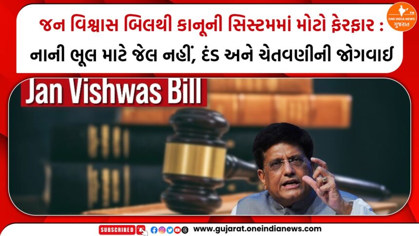 આ બિલ હેઠળ, અત્યાર સુધી નાની ભૂલ માટે લાગતી જેલ સજાની જોગવાઈઓને દૂર કરીને દંડ અથવા ચેતવણીમાં ફેરવવામાં આવશે. વેપારીઓ, ઉદ્યોગસાહસિકો અને સામાન્ય નાગરિકો પરનો બિનજરૂરી કાનૂની બોજ ઓછો કરવાનો આ મહત્વપૂર્ણ પ્રયાસ છે. ખાસ કરીને પ્રથમ વખત થયેલી ભૂલ માટે લોકોને સુધારવાની તક આપવામાં આવશે.