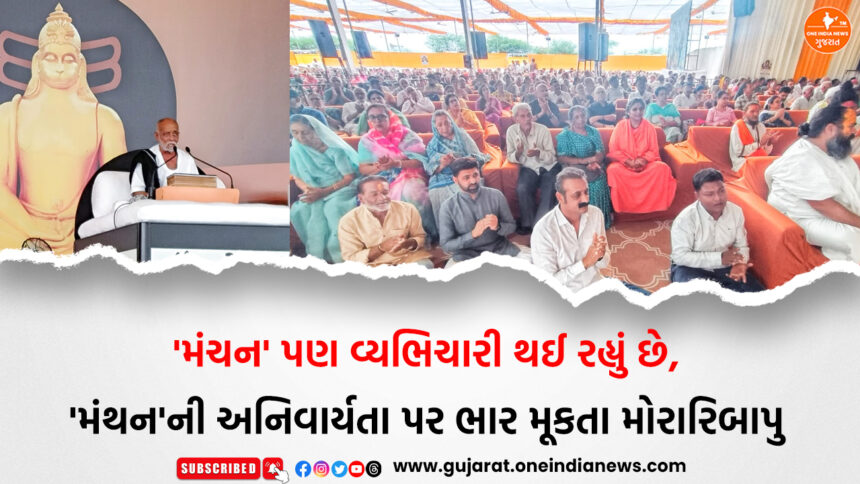 બગસરામાંં સનાતન સંસ્કૃતિ અને લોકસાહિત્યના ગાન સાથે રામકથા ‘માનસ મેઘાણી’ લાભ મળી રહ્યો છે. ‘મંચન’ પણ વ્યભિચારી થઈ રહ્યું છે, ‘મંથન’ની અનિવાર્યતા પર ભાર મૂકતા મોરારિબાપુએ ક્થા પ્રસંગોનું વર્ણન કર્યું.