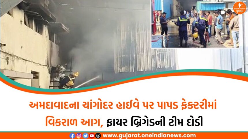 અમદાવાદના ઔદ્યોગિક વિસ્તારોમાં બનેલા આગના બનાવોની શ્રેણીમાં આજે એક વધુ ગંભીર ઘટના સામે આવી છે. ચાંગોદર–સરખેજ–બાવળા હાઈવે પર આવેલી અમૃતા પાપડ પ્રોડક્ટ પ્રાઈવેટ લિમિટેડની ફેક્ટરીમાં અચાનક લાગેલી આગે ભારે હડકંપ મચાવી દીધો. સવારે અચાનક ફેક્ટરીમાંથી ધુમાડાના ઘોર કાળા ગોટેગોટા ઉડતા જોવા મળતા જ કામદારોમાં ગભરાટ ફેલાઈ ગયો અને દરેકે જીવ બચાવવા માટે બહાર ભાગદોડ કરી દીધી. આગ એટલી વિકરાળ હતી કે દૂરથી પણ જ્વાળા અને ધુમાડો સ્પષ્ટ દેખાઇ રહ્યો હતો.