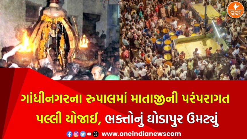 ગાંધીનગરના રુપાલમાં આવેલા વરદાયિની માતાજીના મંદિરમાં દર વર્ષે યોજાતી પલ્લી યાત્રા માઈભક્તો માટે અત્યંત પાવન અને મહત્વપૂર્ણ પ્રસંગ ગણાય છે. દર વર્ષે આસો મહિનાની નવરાત્રિની નોમના દિવસે, પલ્લી યાત્રા વિશેષ ભક્તિભાવ અને આસ્થાથી ઉજવવામાં આવે છે, જેમાં દેશના અલગ-અલગ ભાગથી હજારો ભક્તો ઉમટી પડતા હોય છે. આ યાત્રાનું મુખ્ય આકર્ષણ માતાજીની પલ્લી પર ઘીનો અભિષેક છે, જેને ભક્તો શ્રદ્ધા અને ભક્તિભાવ સાથે કરવામાં આવે છે. આ વર્ષે પણ, 30 સપ્ટેમ્બર 2025ના રોજ રાતે 12:00 વાગ્યે પલ્લી યાત્રા નીકળતી વખતે, ભક્તોએ ભક્તિભાવથી પલ્લી પર ઘીનો અભિષેક કર્યો અને ધન્યતા અનુભવી. ઘીના અભિષેક માટે ટ્રેક્ટરની ટ્રોલીઓમાં વિશાળ માત્રામાં શુદ્ધ ઘી એકત્ર કરવામાં આવ્યું હતું, અને ભક્તોએ અનોખા આનંદ અને આત્મિક શાંતિ સાથે માતાજીનો આશીર્વાદ મેળવ્યો.