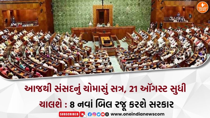 21 જુલાઈથી શરૂ થતા ચોમાસું સત્રને લઈને દેશની રાજનીતિક પ્રવૃત્તિઓ ફરી એકવાર ગતિ પકડી રહી છે. આ સત્ર 21 ઓગસ્ટ સુધી ચાલશે અને કુલ 32 દિવસના સમયગાળામાં 21 બેઠકો યોજાવાની છે. મધ્યમાં 12 થી 18 ઓગસ્ટ દરમિયાન સ્વતંત્રતા દિવસના આયોજનોને ધ્યાનમાં રાખીને સત્ર સ્થગિત રહેશે.