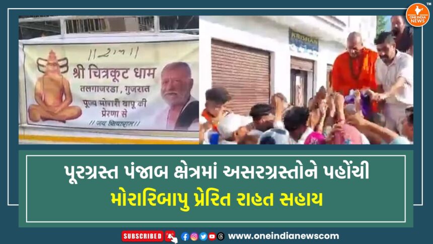 ભારે વરસાદથી પૂરગ્રસ્ત પંજાબ ક્ષેત્રમાં અસરગ્રસ્તોને મોરારિબાપુ પ્રેરિત રાહત સહાય પહોંચી રહી છે. રામકથા શ્રોતાઓ દ્વારા સત્ય, પ્રેમ અને કરુણાનાં મંત્ર મૂલ્યો સાથે ચાલતું સેવા કાર્ય સ્થાનિકો માટે આશીર્વાદરૂપ બન્યું છે.