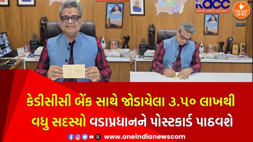 વડાપ્રધાન નરેન્દ્રભાઇ મોદીની દીર્ધદ્રષ્ટિથી દેશમાં સહકાર ક્ષેત્રે એક નવી ઉર્જાનો સંચાર થયો છે. સહકારથી સમૃદ્ધિના મંત્ર સાથે દેશના સહકારી ક્ષેત્રને વૈશ્વિક સ્તરે લઇ જવાના વડાપ્રધાનશ્રીના પ્રયાસો બદલ આભાર વ્યકત કરતાં કેડીસીસી બેંક તરીકે જાણીતી ધી ખેડા જિલ્લા મધ્યસ્થ સહકારી બેંક લિ.-નડિયાદના ચેરમેન તેજસ પટેલ, બોર્ડના તમામ ડિરેક્ટર સહિત બેંક સાથે જોડાયેલા ૩.૫૦ લાખથી વધુ સદસ્યો પોસ્ટકાર્ડ પાઠવશે. જેમાં ખાસ કરીને ગ્રામીણ ભારતને ડિજિટલ બનાવવાના વડાપ્રધાનના વિઝનની સરાહના કરવામાં આવી છે.