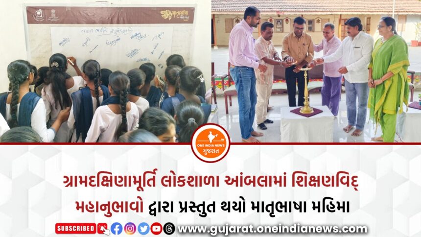 ગુજરાત સાહિત્ય અકાદમી દ્વારા માતૃભાષા સપ્તાહ અંતર્ગત થયેલ આયોજનમાં ગ્રામદક્ષિણામૂર્તિ લોકશાળા આંબલામાં શિક્ષણવિદ્ મહાનુભાવો દ્વારા માતૃભાષા મહિમા પ્રસ્તુત થયો.