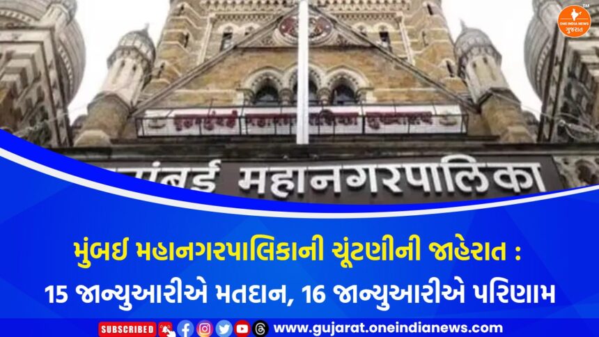 મુંબઈની સૌથી શક્તિશાળી અને દેશની સૌથી ધનાઢ્ય લોકલ બોડી ગણાતી બૃહન્મુંબઈ મ્યુનિસિપલ કોર્પોરેશન (BMC)ની ચૂંટણી આખરે જાહેર થઈ ગઈ છે. મહારાષ્ટ્ર રાજ્ય ચૂંટણી પંચે સોમવાર, 15 ડિસેમ્બરના રોજ જાહેરાત કરતા જણાવ્યું હતું કે 15 જાન્યુઆરીએ મતદાન યોજાશે અને 16 જાન્યુઆરીએ મતગણતરી કરવામાં આવશે. મુંબઈ સાથે સાથે રાજ્યની અન્ય 28 મહાનગરપાલિકાઓની ચૂંટણી પણ એકસાથે યોજાશે, જેમાં કુલ 2,869 બેઠકો માટે અંદાજે 3.48 કરોડ મતદારો પોતાનો મતાધિકાર વાપરશે. આ જાહેરાત સાથે જ તમામ પાલિકા વિસ્તારોમાં આચારસંહિતા તાત્કાલિક અમલમાં આવી ગઈ છે.