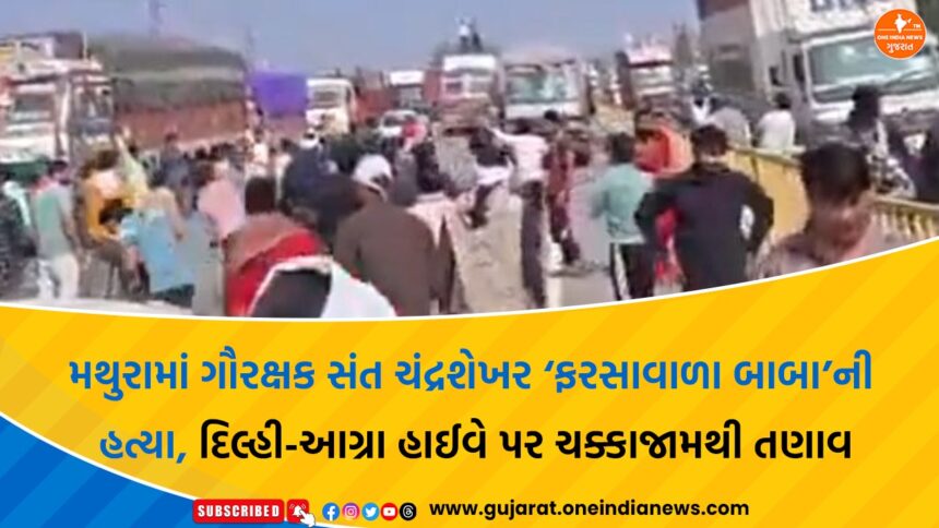 ઉત્તર પ્રદેશના મથુરા જિલ્લામાં ગૌરક્ષા આંદોલનના જાણીતા ચહેરા સંત ચંદ્રશેખર ઉર્ફે ‘ફરસાવાળા બાબા’ની હત્યા બાદ સમગ્ર વિસ્તારમાં તણાવપૂર્ણ સ્થિતિ સર્જાઈ છે. ઘટનાના વિરોધમાં ગુસ્સે ભરાયેલા ગૌરક્ષકો અને સ્થાનિક લોકોએ દિલ્હી-આગ્રા હાઈવે પર ચક્કાજામ કરીને ભારે વિરોધ નોંધાવ્યો હતો.