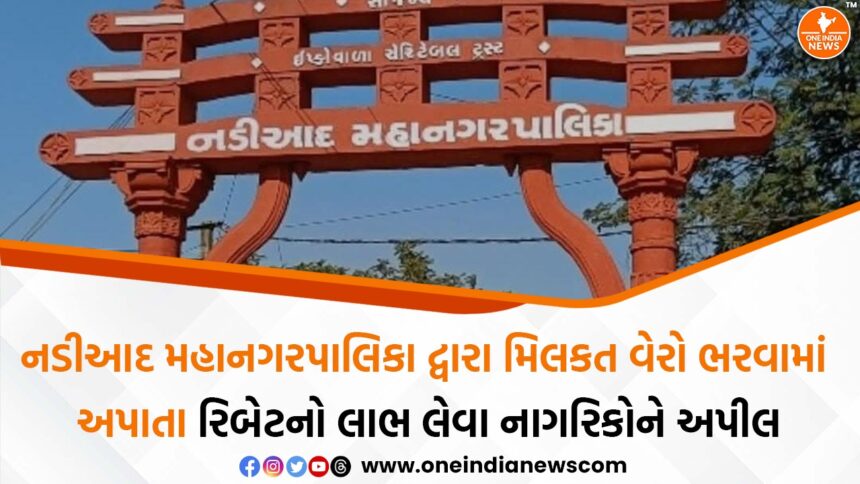 આ રીબેટ યોજનાનો મહત્તમ લાભ મહાનગરપાલિકા વિસ્તારના વધુમાં વધુ રહીશોએ લેવા નડીઆદ મહાનગરપાલિકા કમિશનર જી.એચ.સોલંકી દ્વારા અનુરોધ કરવામાં આવે છે.