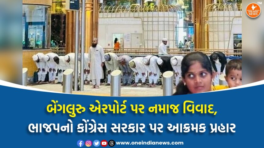 કર્ણાટકના કેમ્પેગૌડા ઇન્ટરનેશનલ એરપોર્ટ (KIA) ના ટર્મિનલ-2ની અંદર કેટલીક વ્યક્તિઓ દ્વારા નમાજ પઢવામાં આવી રહી હોવાનો વિડીયો સોશિયલ મીડિયામાં વાયરલ થતાં રાજકીય તોફાન મચી ગયું છે. આ વિડીયોમાં દેખાય છે કે એરપોર્ટના હાઈ-સિક્યોરિટી ઝોનમાં મુસાફરોની હાજરી વચ્ચે કેટલાક લોકો જમીન પર ચટાઈ પાથરી નમાજ અદા કરી રહ્યા છે। ઘટનાને લઈને ભાજપે કોંગ્રેસ સરકાર પર ગંભીર આક્ષેપો કર્યા છે અને રાજ્યની સુરક્ષા વ્યવસ્થા તથા સરકારના “બેવડા ધોરણ” પર સવાલો ઉઠાવ્યા છે.