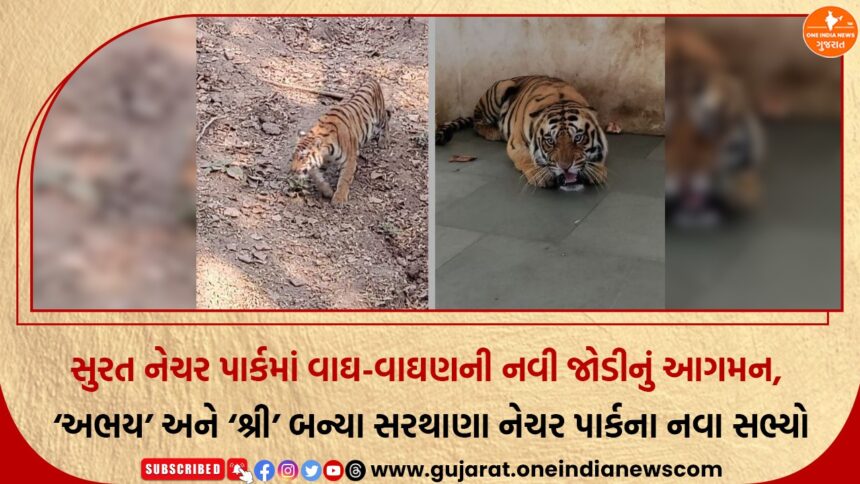મળતી માહિતી મુજબ, સુરત મહાનગરપાલિકા સંચાલિત નેચર પાર્કમાં ‘એનિમલ એક્સચેન્જ સ્કીમ’ અંતર્ગત આ વાઘ-વાઘણની જોડી લાવવામાં આવી છે. વાઘનું નામ ‘અભય’ અને વાઘણનું નામ ‘શ્રી’ છે. બંનેએ ભુવનેશ્વરથી સુરત સુધીની આશરે 1675 કિલોમીટર લાંબી મુસાફરી માત્ર 48 કલાકમાં પૂર્ણ કરી છે. લાંબી મુસાફરી દરમિયાન તેમની આરોગ્ય સલામતી માટે ખાસ વ્યવસ્થા કરવામાં આવી હતી.