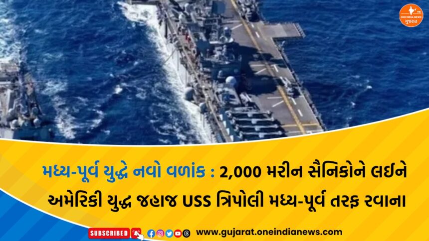 28 ફેબ્રુઆરીથી શરૂ થયેલા યુએસ-ઇઝરાયેલ અને ઈરાન વચ્ચેના યુદ્ધમાં ત્રીજું અઠવાડિયું પ્રવેશી ગયું છે. તાજેતરમાં, અમેરિકી નૌકાદળનું શક્તિશાળી USS ત્રિપોલી (LHA-7) 2,000 થી વધુ મરીન્સ સાથે ઈરાનની કિનારા તરફ આગળ વધી રહ્યું છે. વિશેષ નિષ્ણાતો અનુસાર, આ યુદ્ધપોતનું આગમન આગામી દિવસોમાં યુદ્ધના નકશાને સંપૂર્ણપણે બદલવા માટે પૂરતું સક્ષમ છે.
