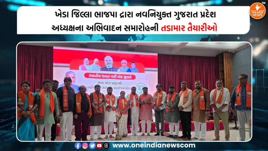 ગુજરાત પ્રદેશ ભાજપના નવનિયુક્ત પ્રમુખ જગદીશભાઈ વિશ્વકમાં આગામી ૩જી નવેમ્બરે,સોમવારે, ખેડા જિલ્લાના પ્રવાસે આવી રહ્યા છે. તેમના પ્રવાસ દરમિયાન જગદીશભાઈ વિશ્વકમાં ખેડા જિલ્લાના વીર ભાથીજી મહારાજના ફાગવેલ ધામ અને સંતરામ મહારાજની ભૂમિ નડિયાદની મુલાકાત લેશે.આ ઉપરાંત સરદાર પટેલના જન્મ સ્થળ, નડિયાદની મુલાકાતે પણ તેઓ જવાના છે ગુજરાત પ્રદેશ ભાજપના પ્રમુખપદે તેઓ નિયુક્ત થયા બાદની તેમની આ પ્રથમ મુલાકાત હોઈ ખેડા જિલ્લા ભાજપ સંગઠન દ્વારા તેમના અભિવાદન સમારોહનું પણ તા.૩જી નવેમ્બરે, સોમવારે સવારે ૧૧.૦૦ કલાકે નડિયાદના બીએપીએસ સ્વામિનારાયણ મંદિરના વિશાળ પ્રાંગણમાં આયોજન કરવામાં આવ્યું છે. આ અભિવાદન સમારોહના આયોજન માટેની જિલ્લા ભાજપ દ્વારા તડામાર તૈયારીઓ શરૂ કરી દેવામાં આવી છે અને તેના ભાગરૂપ આજે એક બેઠક યોગીફાર્મ, નડિયાદના કેશવકુંજ હોલમાં મળી હતી.