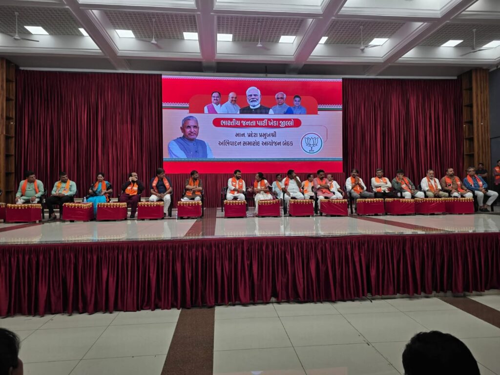આ બેઠકમા પ્રદેશથી સમારોહના ઇન્ચાર્જ ધવલભાઈ દવે તેમજ પૂર્વ યુવા મોર્ચા અધ્યક્ષ અને ચોર્યાસીના ધારાસભ્ય સંદીપભાઈ દેસાઈ તેમજ જિલ્લા પ્રભારી કુશળસિંહ પઢેરિયાજી ની અધ્યક્ષતામાં યોજાઈ, જેમાં જિલ્લા અધ્યક્ષ નયનાબેન પટેલ, પ્રદેશ મંત્રી જ્હાન્વીબેન વ્યાસ, સાથે નડિયાદ ધારાસભ્ય પંકજભાઈ દેસાઈ, માતર, મહેમદાવાદ, ઠાસરા, કપડવંજના ધારાસભ્યો, અમુલ ચેરમેન વિપુલભાઈ પટેલ, kdcc ચેરમેન તેજસભાઈ પટેલ, પૂર્વ અધ્યક્ષ અજયભાઇ તેમજ જિલ્લા મહામંત્રી સાથે જિલ્લા/તાલુકાના સહુ હોદેદારો ઉપસ્થિત રહી માર્ગદર્શન મેળવ્યું હતું.