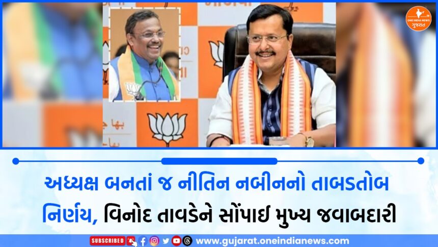 ભાજપના 12મા રાષ્ટ્રીય અધ્યક્ષ તરીકે નીતિન નબીન પદભાર સંભાળતા જ ફૂલ એક્શન મોડમાં જોવા મળ્યા છે. પદભાર સંભાળ્યા પછી ગણતરીના કલાકોમાં જ તેમણે આગામી વિધાનસભા અને સ્થાનિક ચૂંટણીઓને ધ્યાનમાં રાખીને વરિષ્ઠ નેતાઓની નિમણૂક કરીને તાબડતોબ નિર્ણયો લીધા છે. તેમણે કેરળ વિધાનસભા ચૂંટણી માટે વરિષ્ઠ નેતા વિનોદ તાવડેને ચૂંટણી પ્રભારી તરીકે અને ચંડીગઢ મેયરની ચૂંટણી માટે નિરીક્ષક તરીકે નિયુક્ત કર્યો છે. શોભા કરંદલાજેને તેમની સાથે સહ-પ્રભારી તરીકે નિયુક્ત કરવામાં આવ્યા છે.