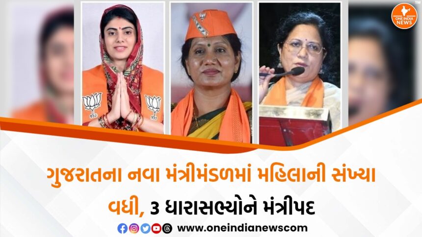 ગુજરાતના મુખ્યમંત્રી ભૂપેન્દ્ર પટેલે પોતાના નવા મંત્રીમંડળમાં મહિલા પ્રતિનિધિત્વને મજબૂત કરવા માટે ત્રણ મહિલા ધારાસભ્યોને મંત્રીપદ પર સ્થાન આપ્યું છે, જે રાજ્યની રાજનીતિમાં મહિલા સશક્તિકરણના ઉદ્દેશ્યને પ્રગટ કરે છે. આ ત્રણેય મહિલાઓ—મનીષા વકીલ, રીવાબા જાડેજા અને દર્શના વાઘેલા—રાજ્યના અલગ અલગ પ્રદેશોનું પ્રતિનિધિત્વ કરે છે અને તેમના અનુભવ અને યુવા ઊર્જાનું સંતુલન મંત્રીમંડળમાં જાળવવામાં આવ્યું છે. મુખ્યમંત્રીના આ નિર્ણયથી રાજનીતિમાં મહિલાઓની ભાગીદારી વધારવાના ઉદ્દેશ સાથે સાથે પ્રાદેશિક સંતુલન પણ સુનિશ્ચિત કરવામાં આવ્યું છે.