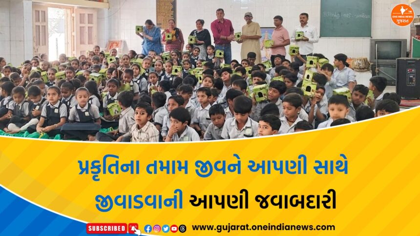 ઈશ્વરિયાની પ્રાથમિક શાળામાં ‘ધરતીના છોરું’ અભિયાનમાં ચકલી માળાની ભેટ અપાઈ ત્યારે સંદેશો અપાયો કે, પ્રકૃતિના તમામ જીવને આપણી સાથે જીવાડવાની આપણી જવાબદારી રહેલી છે.