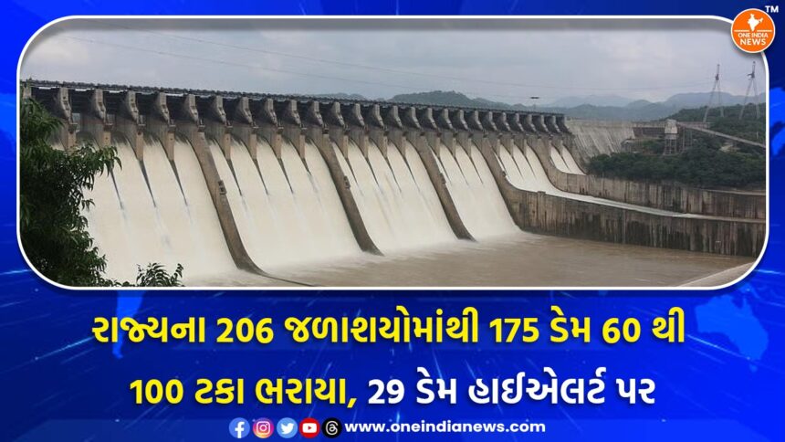 અન્ય દ્રષ્ટિએ જુઓ તો રાજ્યના 206 ડેમમાંથી 20 ડેમ પૂરાપૂરી ભરાઈ ગયા છે, જ્યારે 43 ડેમ 70-100% સ્તરે છે, 49 ડેમ 50-70% સ્તરે, 46 ડેમ 25-50% સ્તરે અને 48 ડેમ હજુ 25% કે તેથી પણ ઓછા સ્તરે છે. હાલની સ્થિતિને ધ્યાનમાં લેતા 29 ડેમ પર હાઈ એલર્ટ, 17 પર એલર્ટ, અને 17 ડેમ માટે વોર્નિંગ ઇશ્યૂ કરવામાં આવી છે. આ હાઈ એલર્ટ લિસ્ટમાં સૌરાષ્ટ્ર-કચ્છના 19 ડેમ અને તાપી જિલ્લાના 1 ડેમનો સમાવેશ થાય છે. આવી સ્થિતિમાં તળાવોના ઓવરફ્લો અને નદીના વધતા પાણીના સ્તરે પુરની સ્થિતિનું જોખમ પણ વધી ગયું છે.
