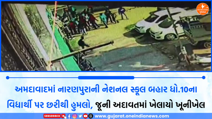 અમદાવાદમાં કાયદો અને વ્યવસ્થાની સ્થિતિ સામે સવાલો ઊભા કરતી એક ચોંકાવનારી ઘટના નારણપુરા વિસ્તારમાં સામે આવી છે. સોલા રોડ પર આવેલા ભૂયંગદેવ ચાર રસ્તા પાસેની નેશનલ સ્કૂલની બહાર આજે સવારે ધોરણ 10માં અભ્યાસ કરતા એક વિદ્યાર્થી પર છરી વડે જીવલેણ હુમલો કરવામાં આવ્યો હતો. ભરબજારમાં બનેલી આ ઘટનાને પગલે સ્થાનિક લોકો અને વિદ્યાર્થીઓમાં ભારે ફફડાટ ફેલાયો હતો.