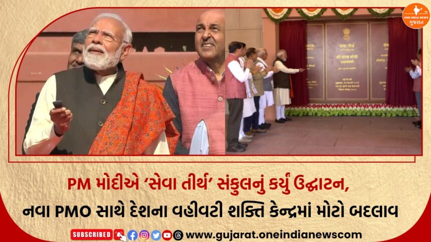 પ્રધાનમંત્રી નરેન્દ્ર મોદીએ શુક્રવારે સેન્ટ્રલ વિસ્ટા પ્રોજેક્ટ હેઠળ બનેલા આધુનિક ‘સેવા તીર્થ’ ભવન સંકુલનું ભવ્ય ઉદ્ઘાટન કર્યું છે. આ સાથે દેશના વહીવટી માળખામાં એક ઐતિહાસિક પરિવર્તન નોંધાયું છે, કારણ કે હવે પ્રધાનમંત્રી પોતાનું અધિકૃત કાર્યાલય (PMO) અહીંથી સંચાલિત કરશે. બપોરે આશરે 1:30 વાગ્યે પીએમ મોદીએ સંકુલના નામની તકતીનું અનાવરણ કર્યું અને આ નવા વહીવટી કેન્દ્રને દેશના શાસન વ્યવસ્થાના આધુનિક પ્રતિક તરીકે રજૂ કર્યું.