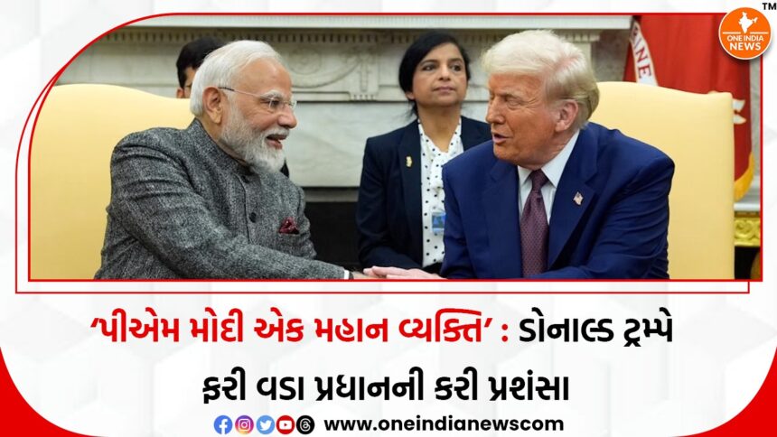અમેરિકી રાષ્ટ્રપતિ ડોનાલ્ડ ટ્રમ્પે ફરી એકવાર વડા પ્રધાન નરેન્દ્ર મોદીની પ્રશંસા કરી છે અને જણાવ્યું કે તેઓ એક “મહાન વ્યક્તિ” તેમજ “મિત્ર” છે. શુક્રવારે, 7 નવેમ્બરે વ્હાઇટ હાઉસમાં પત્રકારો સાથેની વાતચીત દરમિયાન, ટ્રમ્પે જણાવ્યું કે ભારત અને અમેરિકા વચ્ચેના વેપાર સંબંધોને વધુ મજબૂત બનાવવા માટે બંને દેશો વચ્ચે સતત ચર્ચા ચાલી રહી છે. તેમણે કહ્યું કે વડા પ્રધાન મોદીને તેઓ વ્યક્તિગત રીતે ખૂબ માન આપે છે અને બંને વચ્ચે મિત્રતાપૂર્ણ સંબંધ છે. ટ્રમ્પે કહ્યું, “વડા પ્રધાન મોદી એક મહાન વ્યક્તિ છે, મારા મિત્ર છે અને અમે વારંવાર વાતચીત કરીએ છીએ.”