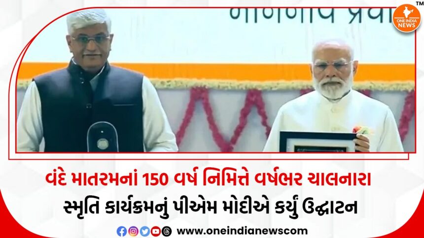 પ્રધાનમંત્રી નરેન્દ્ર મોદીએ નવી દિલ્હીના ઇન્દિરા ગાંધી ઇન્ડોર સ્ટેડિયમમાં રાષ્ટ્રીય ગીત ‘વંદે માતરમ’ની 150મી વર્ષગાંઠની રાષ્ટ્રીય સ્તરની ઉજવણીનો ઔપચારિક પ્રારંભ કર્યો. શુક્રવારે યોજાયેલા આ ઐતિહાસિક કાર્યક્રમમાં તેમણે દેશભરમાં લાખો લોકોને એકસાથે જોડીને વંદે માતરમનું સામૂહિક ગાન કરાવ્યું. આ પ્રસંગે પ્રધાનમંત્રીએ સ્મારક ટપાલ ટિકિટ અને સ્મારક સિક્કો પણ બહાર પાડ્યો, જે આ રાષ્ટ્રીય ગીતના ગૌરવપૂર્ણ ઇતિહાસ અને તેની અવિનાશી પ્રેરણાને સમર્પિત છે.