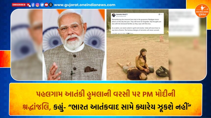 વડાપ્રધાન નરેન્દ્ર મોદીએ પહલગામ આતંકી હુમલાની વરસી પર હુમલામાં જીવ ગુમાવનારા નિર્દોષ લોકોને શ્રદ્ધાંજલિ અર્પી હતી. તેમણે સોશિયલ મીડિયા પ્લેટફોર્મ X પર લખ્યું કે, દેશ આ ભયાનક હુમલાના પીડિતોને ક્યારેય ભૂલશે નહીં.
