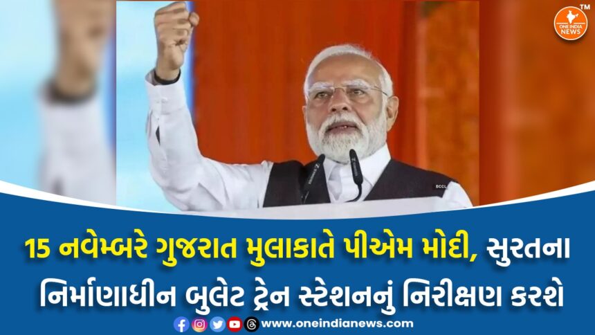 વડા પ્રધાન નરેન્દ્ર મોદી 15 નવેમ્બરે ગુજરાતના એક દિવસીય પ્રવાસે આવી રહ્યા છે, જે દેશની આધુનિક ટેકનોલોજી અને આદિવાસી વિકાસ બંનેને સમર્પિત રહેશે. સવારે તેઓ સુરત પહોંચીને નિર્માણાધીન બુલેટ ટ્રેન સ્ટેશનની મુલાકાત લેશે અને મુંબઈ-અમદાવાદ હાઇ-સ્પીડ રેલ કોરિડોર (MAHSR)ની પ્રગતિની સમીક્ષા કરશે. 508 કિમી લાંબી આ અતિ મહત્વપૂર્ણ પરિયોજનામાંથી 352 કિમી માર્ગ ગુજરાતમાં અને 156 કિમી માર્ગ મહારાષ્ટ્રમાં આવેલો છે. આ સંપૂર્ણ કોરિડોરમાં લગભગ 85 ટકા ભાગ ઊંચા પુલો પર બનાવવામાં આવી રહ્યો છે, જેથી જમીનનો ઓછામાં ઓછો ઉપયોગ થાય અને સલામતી તથા ગતિ બંને સુનિશ્ચિત રહે. અત્યાર સુધીમાં 326 કિમી પુલનું નિર્માણ પૂર્ણ થઈ ચૂક્યું છે, અને નદીઓ પર બનનારા 25 પુલોમાંથી 17 પુલ તૈયાર થઈ ગયા છે.