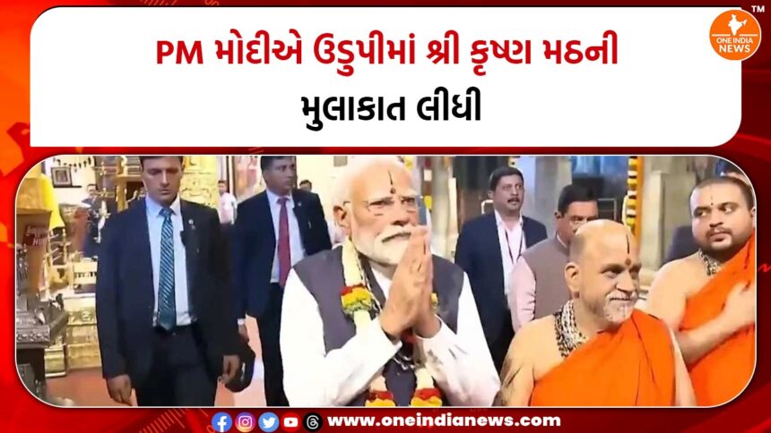 PM નરેન્દ્ર મોદીએ આજે ઉડુપીમાં ઐતિહાસિક શ્રી કૃષ્ણ મઠની મુલાકાત લીધી અને ‘લક્ષ ગીતા પાઠન’ (લક્ષ્મણ ગીતાનું વાંચન) માં ભાગ લીધો. આ એક સામૂહિક પાઠ છે જેમાં 1 લાખથી વધુ ભક્તોએ ભગવદ ગીતાના શ્લોકોનું પઠન કર્યું હતું. PM મોદીએ શ્રી કૃષ્ણ મંદિરમાં પ્રાર્થના કરી અને પ્રમુખ પુજારી પર્યયા સ્વામીજી પાસેથી આશીર્વાદ લીધા. નોંધનીય છે કે પીએમ મોદીની ઉડુપીની આ ત્રીજી મુલાકાત છે. તેમણે બીજી વખત શ્રી કૃષ્ણ મઠની મુલાકાત લીધી. પીએમ મોદી પહેલી વાર 1993માં ઉડુપી ગયા હતા અને પછી 2008માં જ્યારે તેઓ ગુજરાતના મુખ્યમંત્રી હતા. આ દરમિયાન PMએ શ્રી કૃષ્ણ મંદિરની પણ મુલાકાત લીધી.