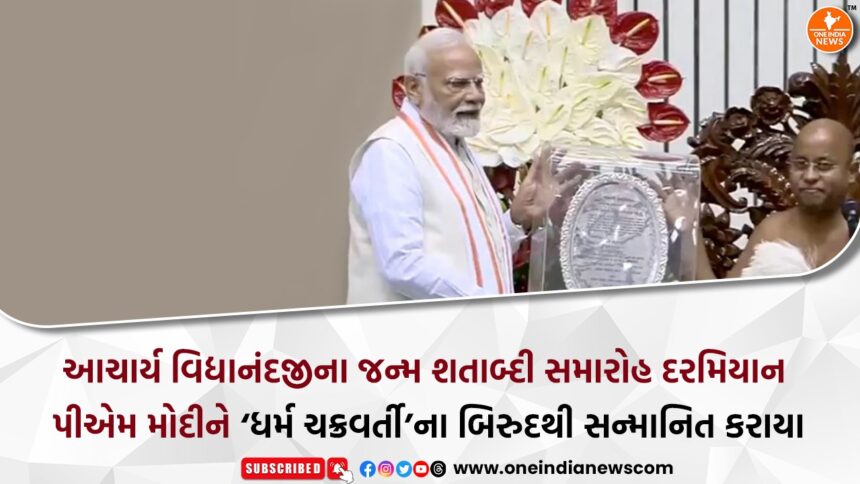 28 જૂન, શનિવારે, યોજાયેલા આચાર્ય વિદ્યાનંદજી મહારાજના જન્મ શતાબ્દી સમારોહ દરમિયાન એક ઐતિહાસિક ક્ષણે વડાપ્રધાન નરેન્દ્ર મોદીને “ધર્મ ચક્રવર્તી” બિરુદથી સન્માનિત કરવામાં આવ્યા. આ અવસરે, ઉપસ્થિત જૈન સંતો દ્વારા વડાપ્રધાનને સન્માન અર્પણ કરીને તેમને આશીર્વાદ આપવામાં આવ્યા હતા. પીએમ મોદીએ આ સન્માન નમ્રતાપૂર્વક સ્વીકાર્યું અને આચાર્ય વિદ્યાનંદજી મહારાજના આધ્યાત્મિક, શૈક્ષણિક અને સાંસ્કૃતિક યોગદાનને યાદ કરીને તેમના જીવન અને કાર્ય માટે શ્રદ્ધાંજલિ અર્પણ કરી.