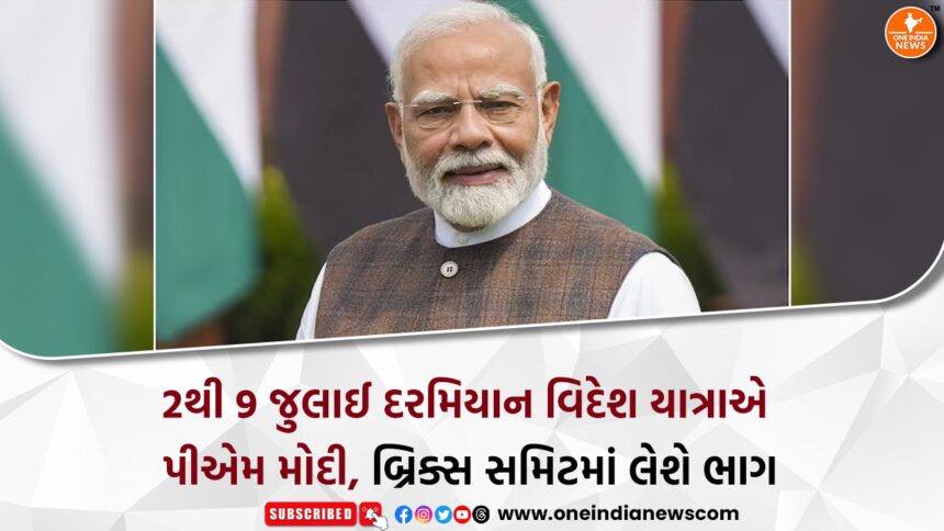 વડાપ્રધાન નરેન્દ્ર મોદી 2 જુલાઈથી 9 જુલાઈ 2025 દરમિયાન એક સપ્તાહની બહુમહત્ત્વની વિદેશ યાત્રા પર જઈ રહ્યા છે, જ્યાં તેઓ પાંચ દેશોની મુલાકાત લેશે અને બ્રાઝિલમાં યોજાનારી BRICS શિખર સંમેલનમાં પણ ભાગ લેશે. આ યાત્રા ભારતના વૈશ્વિક સમીકરણો, દક્ષિણ દિશા દેશો સાથેના સંબંધો અને વૈશ્વિક વ્યૂહાત્મક હિતોને મજબૂત કરવાના દ્રષ્ટિકોણથી મહત્વની ગણાઈ રહી છે.