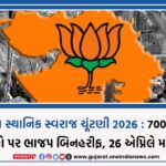 Previous Article ગુજરાત સ્થાનિક સ્વરાજ ચૂંટણી 2026 : 700થી વધુ બેઠકો પર ભાજપ બિનહરીફ, 26 એપ્રિલે મતદાન