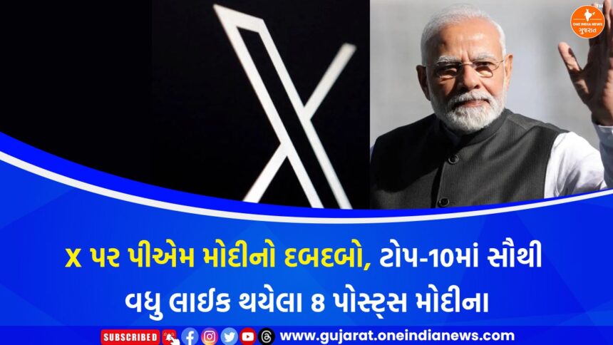 સોશિયલ મીડિયા પ્લેટફોર્મ X (પૂર્વે ટ્વિટર) દ્વારા તાજેતરમાં લોન્ચ કરાયેલા નવા ફીચરમાં દર મહિને દેશમાં સૌથી વધુ લાઈક થયેલા ટ્વિટ્સની યાદી દર્શાવવામાં આવી રહી છે, અને તેમાં ફરી એકવાર પીએમ નરેન્દ્ર મોદીની જબરદસ્ત લોકપ્રિયતા સામે આવી છે. X દ્વારા જાહેર કરાયેલી છેલ્લા 30 દિવસની આંકડાકીય માહિતી અનુસાર, ભારતમાં સૌથી વધુ લાઈક કરાયેલા ટોપ-10 ટ્વિટ્સમાંથી 8 ટ્વિટ્સ પીએમ મોદીના છે, જ્યારે ટોપ-10માં અન્ય કોઈ રાજકીય નેતાનું નામ નથી.