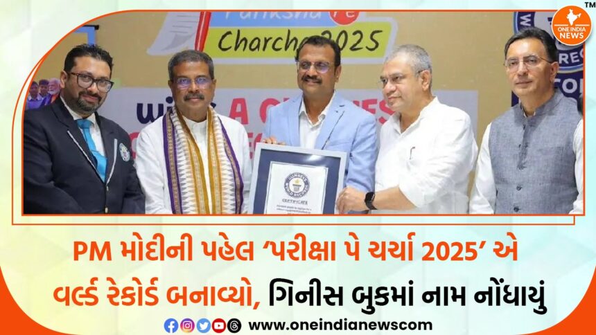 પ્રધાનમંત્રી નરેન્દ્ર મોદીની લોકપ્રિય પહેલ ‘પરીક્ષા પે ચર્ચા’ (PPC)એ શૈક્ષણિક ક્ષેત્રમાં મહત્ત્વપૂર્ણ સફળતા હાંસલ કરી છે અને હવે તેણે ગિનિસ વર્લ્ડ રેકોર્ડમાં સ્થાન મેળવ્યું છે. ભારત સરકારના શિક્ષણ મંત્રાલયે જાહેરાત કરી છે કે ‘પરીક્ષા પે ચર્ચા 2025’ એ “એક મહિનામાં નાગરિક જોડાણ પ્લેટફોર્મ પર સૌથી વધુ નોંધણીઓ” માટે ગિનિસ બુક ઓફ વર્લ્ડ રેકોર્ડમાં નોંધાયું છે. આ વખતે માત્ર એક જ મહિનામાં 3 કરોડ 53 લાખથી વધુ લોકોએ PPC માટે રજિસ્ટ્રેશન કરાવ્યું હતું, જે અત્યાર સુધીનો એક રેકોર્ડબ્રેકિંગ આંકડો છે.