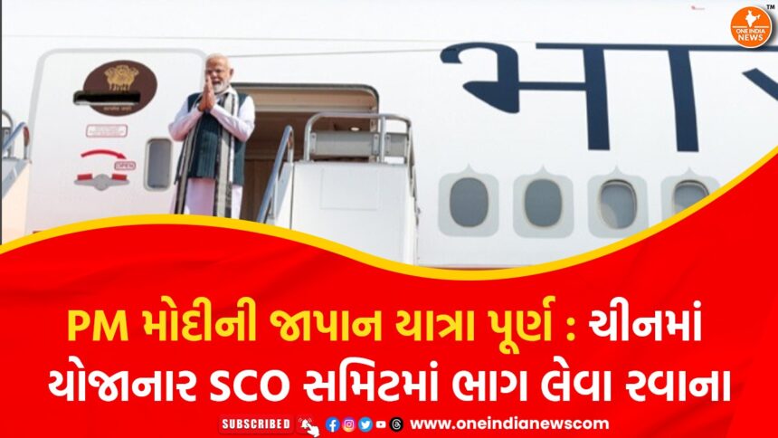 MEA tweets, "A highly productive visit to Japan concludes. It has charted the way forward for deeper India-Japan cooperation. PM Narendra Modi emplanes for China to attend the SCO Summit in Tianjin." pic.twitter.com/T7lD8GLyxN