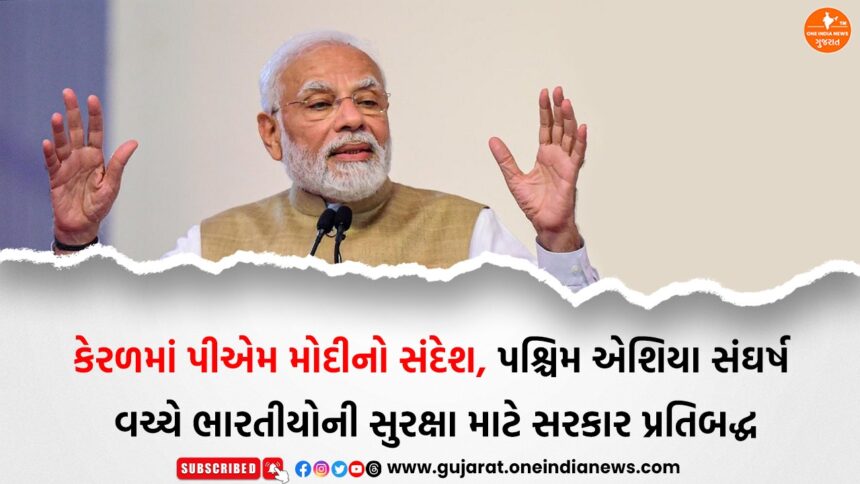 વડા પ્રધાન નરેન્દ્ર મોદી આજે કેરલના પ્રવાસે છે. અહીં એર્નાકુલમમાં યોજાયેલી એક જનસભાને સંબોધતા તેમણે પશ્ચિમ એશિયામાં ચાલી રહેલા સંઘર્ષ અંગે ચિંતા વ્યક્ત કરી હતી. પીએમ મોદીએ કહ્યું કે હાલની પરિસ્થિતિને લઈને ભારત સરકાર સતત નજર રાખી રહી છે અને ખાડી દેશોમાં રહેલા ભારતીયોની સુરક્ષા સુનિશ્ચિત કરવા માટે તમામ જરૂરી પગલાં લેવામાં આવી રહ્યા છે.