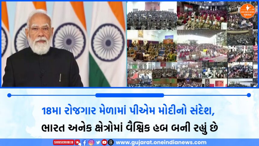 One India News > News > Gujarat > 18મા રોજગાર મેળામાં પીએમ મોદીનો સંદેશ, ભારત અનેક ક્ષેત્રોમાં વૈશ્વિક હબ બની રહ્યું છે