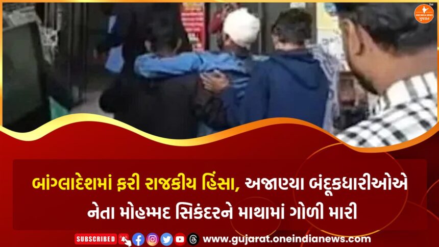 બાંગ્લાદેશમાં રાજકીય હિંસાનો વધુ એક ગંભીર બનાવ સામે આવ્યો છે. નેશનલ સિટિઝન્સ પાર્ટી (NCP)ના લેબર વિંગના નેતા મોહમ્મદ મોતાલેબ સિકંદરને ખુલનામાં અજાણ્યા બંદૂકધારીઓએ ગોળી મારી છે. સિકંદર ખુલનાનો NCP પાર્ટીનો પ્રમુખ હોવા ઉપરાંત NCP શ્રમિક સમિતિનો મુખ્ય સંયોજક પણ છે. અહેવાલ અનુસાર, થોડા દિવસોમાં યોજાનારી પાર્ટીની એક મહત્વપૂર્ણ રેલીની તૈયારી અને વ્યવસ્થામાં વ્યસ્ત હતો, તે દરમિયાન અચાનક હુમલાખોરોએ આવીને તેના પર ગોળીબાર કર્યો. ગોળીઓ તેના માથામાં વાગી હોવાનું કહેવાય છે, જેના કારણે તેને ગંભીર હાલતમાં હોસ્પિટલમાં ખસેડવામાં આવ્યો છે, જ્યાં તેની સારવાર ચાલી રહી છે.