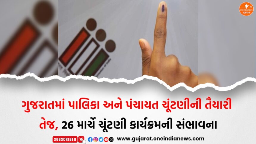 ગુજરાતમાં આવનારી પાલિકા અને પંચાયત ચૂંટણીને લઈને રાજકીય ગતિવિધિઓ ઝડપથી તેજ બની રહી છે. રાજ્ય ચૂંટણી પંચ દ્વારા 26 માર્ચે ચૂંટણી કાર્યક્રમ જાહેર થવાની સંભાવના વ્યક્ત કરવામાં આવી રહી છે.