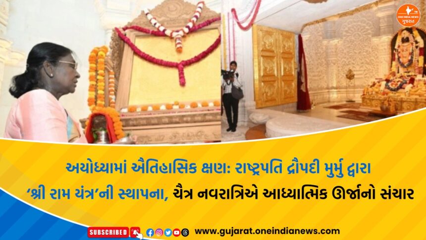 ચૈત્ર નવરાત્રિના પવિત્ર અવસરે રામ જન્મભૂમિ મંદિરમાં એક અત્યંત મહત્વપૂર્ણ આધ્યાત્મિક વિધિ સંપન્ન થઈ છે. દ્રૌપદી મુર્મુએ વૈદિક મંત્રોચ્ચાર વચ્ચે ‘શ્રી રામ યંત્ર’ની સ્થાપના કરીને આ ઐતિહાસિક પ્રસંગને વધુ ભવ્ય બનાવ્યો હતો. આ યંત્રને ભગવાન શ્રી રામના વિજય, ધર્મ અને ગૌરવનું પ્રતીક માનવામાં આવે છે.