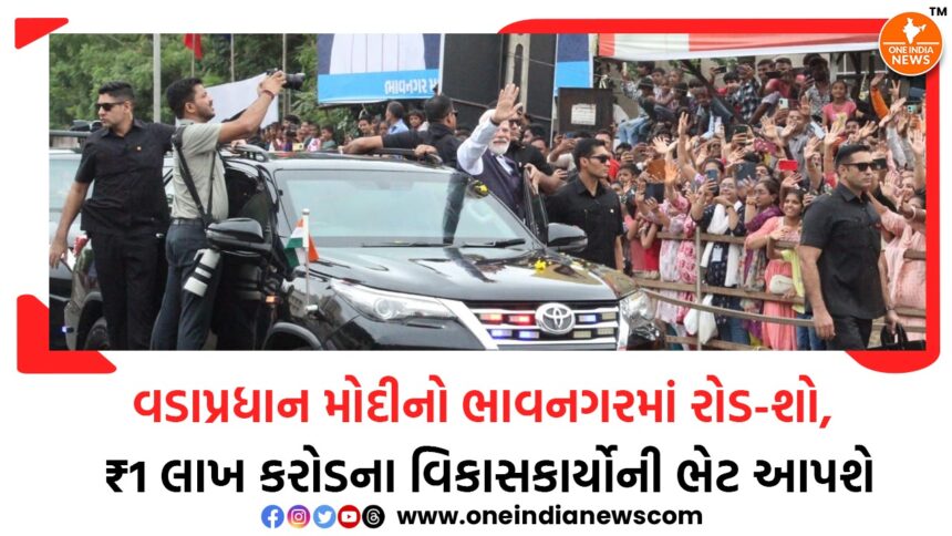 વડાપ્રધાન નરેન્દ્ર મોદીએ આજે ભાવનગરમાં વિશાળ વિકાસ કાર્યક્રમને પ્રારંભ આપ્યો છે. તેમનું આગમન ભાવનગર એરપોર્ટ પર સવારે મંત્રીમંડળના સભ્યો, ઉચ્ચ અધિકારીઓ અને ભાજપ સંગઠનના હોદ્દેદારો દ્વારા સ્વાગત કરવામાં આવ્યું. તેનાથી પીછળા દિવસોની તાત્કાલિક તૈયારી અને ભવ્ય સુરક્ષા વ્યવસ્થા સહિત શહેરને પોલીસ છાવણીમાં ફેરવી દેવામાં આવી હતી. એરપોર્ટથી સીધા પીએમનો કોન્વોય મહિલાઓના કોલેજ સર્કલ તરફ ગયો જ્યાંથી તેમનું ભવ્ય રોડ-શો શરૂ થયું, જે મહિલા કોલેજ, આંબાવાડી સર્કલ અને ઘોઘા સર્કલ સુધી ગુજરીને રૂપાણી સર્કલ પર પૂર્ણ થયું. રોડ-શો દરમિયાન પીએમ મોદીએ ભાવનગરના જનતાને અભિવાદન કર્યો અને તેમના સમર્થકોની વિશાળ ભીડને અભિનંદન આપ્યું.