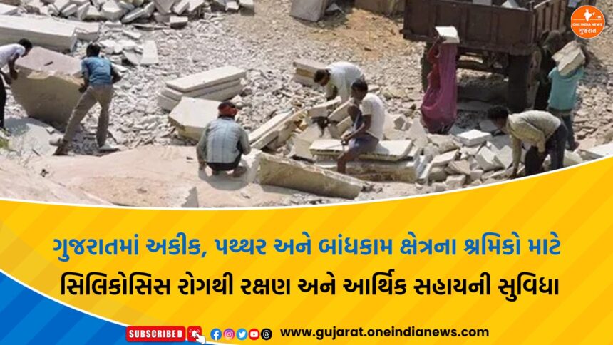 ગુજરાત સરકારના દિશાનિર્દેશનમાં રાજ્યના અકીક, પથ્થર અને બાંધકામ ક્ષેત્રમાં કામ કરતા અસંગઠિત શ્રમિકો અને સ્વાશ્રયી વ્યવસાયિકોને સિલિકોસિસ જેવા ગંભીર વ્યવસાયલક્ષી રોગથી સુરક્ષા અને આર્થિક સહાય મેળવવાનો લાભ આપવામાં આવી રહ્યો છે.