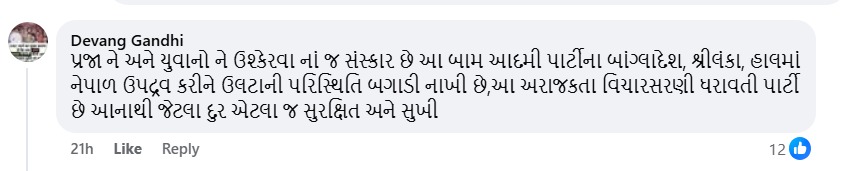 આવા સંવેદનશીલ સમયમાં, ભારતમાં આમ આદમી પાર્ટીની (AAP) સુરત શાખાએ સોશિયલ મીડિયા પર એક પોસ્ટ શેર કરી છે, જે ભારે વિવાદનું કારણ બની છે. ફેસબુક પર મુકાયેલા આ પોસ્ટમાં લખાયું હતું– “શ્રીલંકા, બાંગ્લાદેશ અને હવે નેપાળમાં સત્તાના વિરોધમાં યુવાનો રોડ પર… ભારતના યુવાનો ક્યારે જાગશે…?” આ પોસ્ટને સ્પષ્ટ રીતે ભારતમાં અશાંતિ ફેલાવવાના આહ્વાન તરીકે જોવામાં આવી રહ્યું છે. ઘણા યુઝર્સનો આક્ષેપ છે કે આ પોસ્ટ ભારતના યુવાનોને ઉશ્કેરવાની કોશિશ છે, જે દેશવિરોધી પ્રવૃત્તિઓને પ્રોત્સાહન આપે છે.